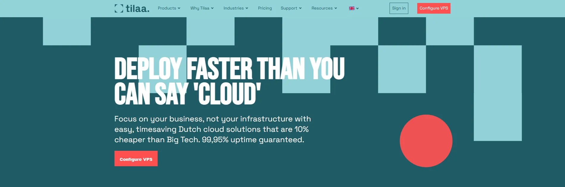 Tilaa is a Dutch cloud provider based in 's-Hertogenbosch with data centers exclusively in the Netherlands. They target businesses requiring strict GDPR compliance and data sovereignty—all data stays within the Netherlands under European law.
